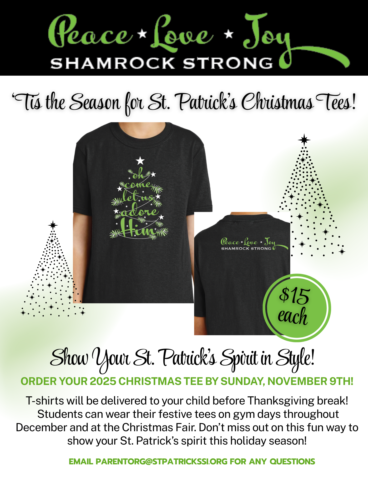 Students may wear this special shirt in place of their gym uniform shirt throughout December, on December dress-down days, at the Christmas Fair (December 5, 2025), and on the last day before Christmas Break.