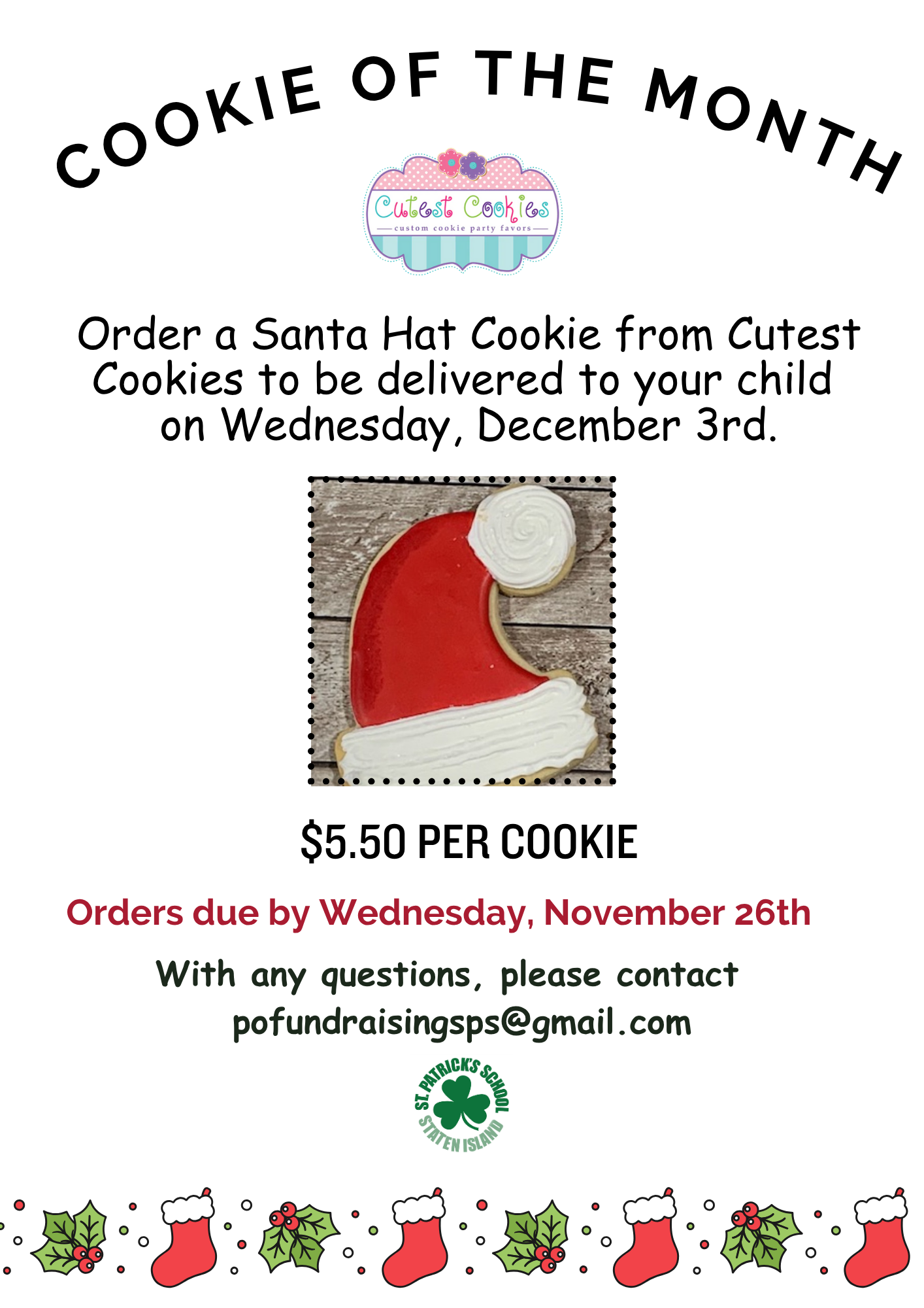 Please contact pofundraisingsps@gmail.com with any questions. *Cutest Cookie is a nut free facility and is on the St. Patrick School approved treat list.